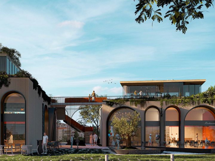 At the heart of the project, an open garden acts as the central attraction and common outdoor seating space for the entire development. Its landscaping and maintenance are provided to ensure a welcoming shared environment. Along the peripheral sides of the project, parking spaces are integrated, alongside practical service circulation linked directly to the backdoors of shops and restaurants, ensuring smooth operations without disrupting the visitor experience.